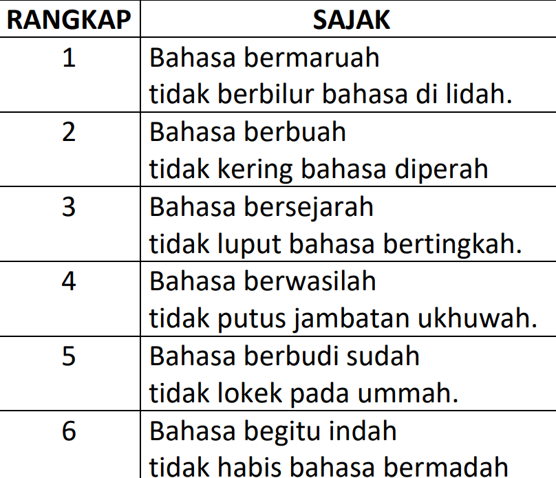 Sajak 'kunci bahasa' komsas tingkatan 1 (ms 14) pengenalan. Bahasa berbuah tidak kering bahasa diperah. Sajak kunci bahasa tingkatan 1. Sajak kunci bahasa 1 pilih jawapan yang betul.
